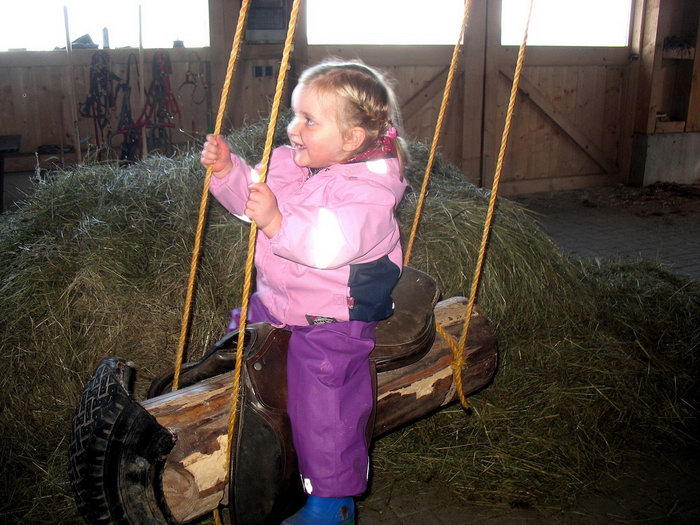 Bauer Roland hat für unsere Gästekinder im neuen Stallanbau eine Pferdeschaukel