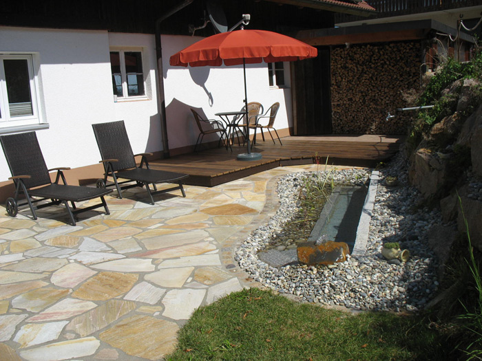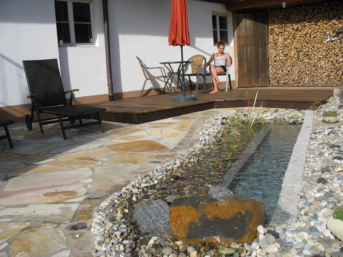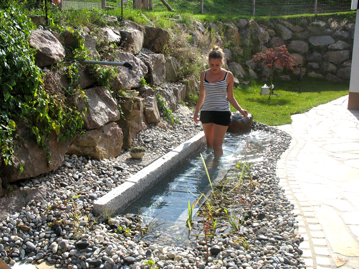 Unser „Quellengarten der Ruhe“ ist für unsere Gäste zum Ausruhen da. Hier können Sie ein erfrischendes Fußbad im neuerstellten Kneippbecken genießen und der sprudelnden Quelle lauschen.