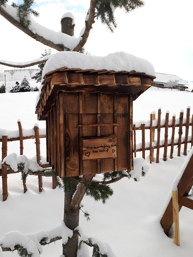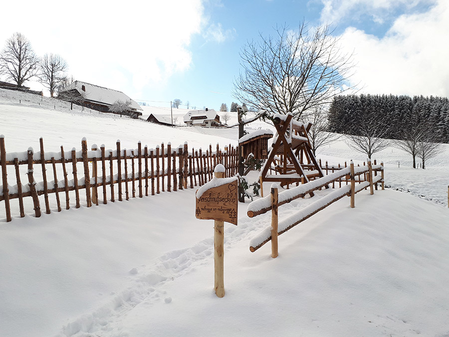 Unsere Jungs Jonas und Simon haben mit viel Motivation und Liebe das neue "Verschnufseckle" gestaltet. An einem schönen Plätzchen mit traumhaftem Blick in die Ferne, haben sie mit hofeigenem Holz eine Ruheoase geschaffen.