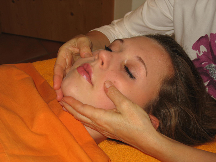 Einschließlich Gesicht, Nacken, Dekolleté und Schultern. Macht den Kopf frei.
